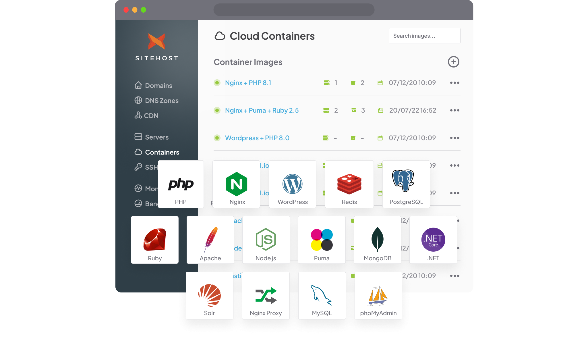 Want to give it a go? Pull the Cloud Container images directly from the SiteHost Docker Hub to run them locally. Of course, to run the images locally you’ll need to have Docker installed. Every image available on Docker Hub has its own description, to help you know exactly which ports and volumes to use.