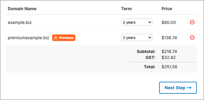 Update, October 2024: Our checkout now clearly marks premium domains.