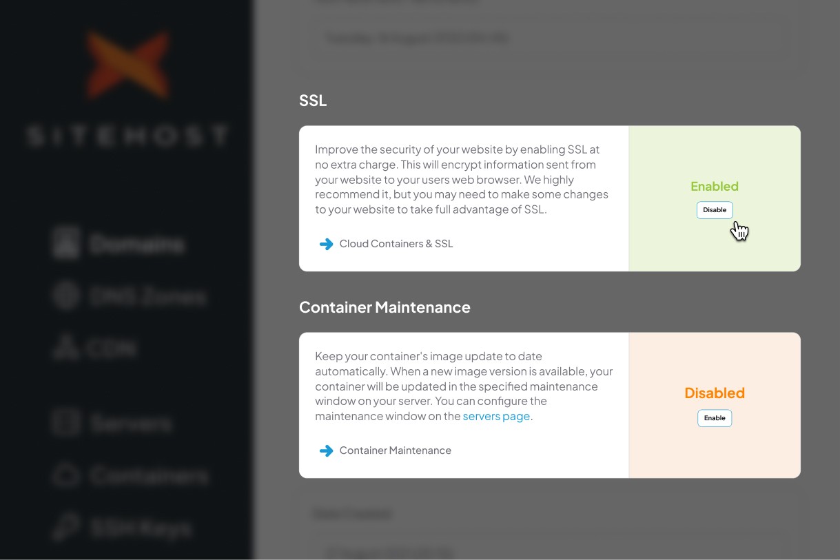We like having full control of Cloud Containers and direct access to code. Ultimately we have more control over what we have on SiteHost compared to other hosting providers. You guys actually listen to feedback, too. We talked about how CWP had live monitoring of disc space and memory usage, and pretty soon afterwards SiteHost had that as well.