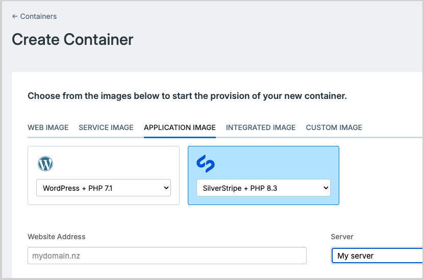 New Cloud Containers are ready in minutes or less. Pick a PHP web image, or use our pre-built Silverstripe image for test or prototype sites. You'll be up and running in no time.